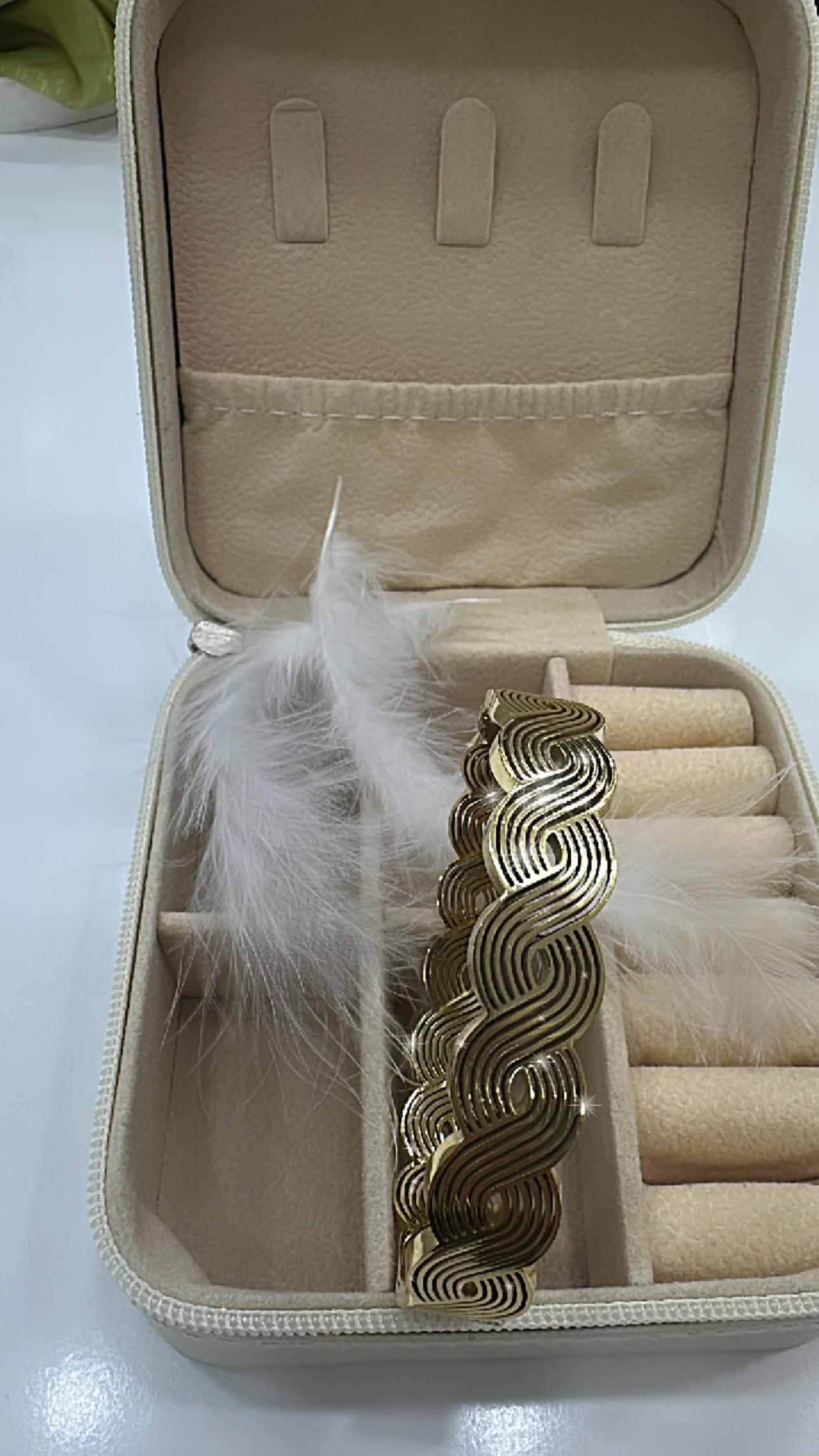 Modern ve iddialı tasarımıyla dikkat çeken bu kelepçe, dalgalı desenlerin uyumlu birleşimiyle parmağınızda sanatsal bir duruş sergiler. Altın kaplama yapısı sayesinde uzun süre parlaklığını korur. Hem günlük şıklıkta hem de özel günlerde stilinize özgün bir hava katacak, farklı tasarımıyla ön plana çıkan özel bir parçadır.